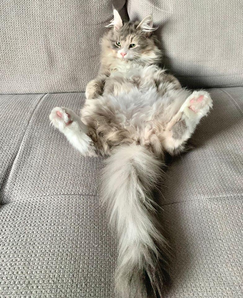 As a seven-month-old kitten he has outgrown our two other indoor cats and has the most magnificent tail.